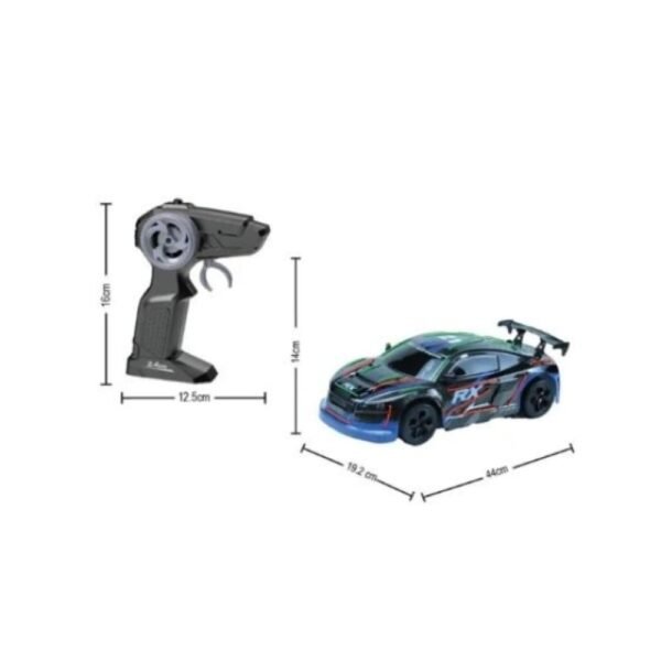 Experience the thrill with the Crazon 1:10 RC Racing Car! Designed for ages 3 and up, this compact yet powerful racing car is perfect for young drivers. With a 7.4V Li-ion battery that provides up to 30 minutes of playtime on a single charge, this car reaches speeds of up to 12 km/h. The streaming shining lights add a fun, colorful flair, making it even more exciting to drive. The car’s 2.4GHz remote control ensures smooth operation within a 25-meter range. Whether you’re zooming forward, backward, or turning left and right, this RC car promises hours of fun!